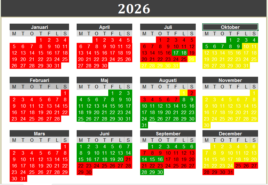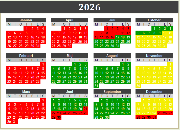 Resterande betalning skall ske senast 30 dagar före ankomst.