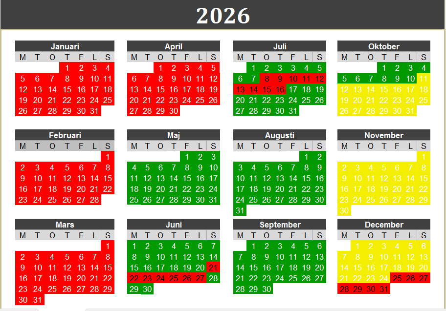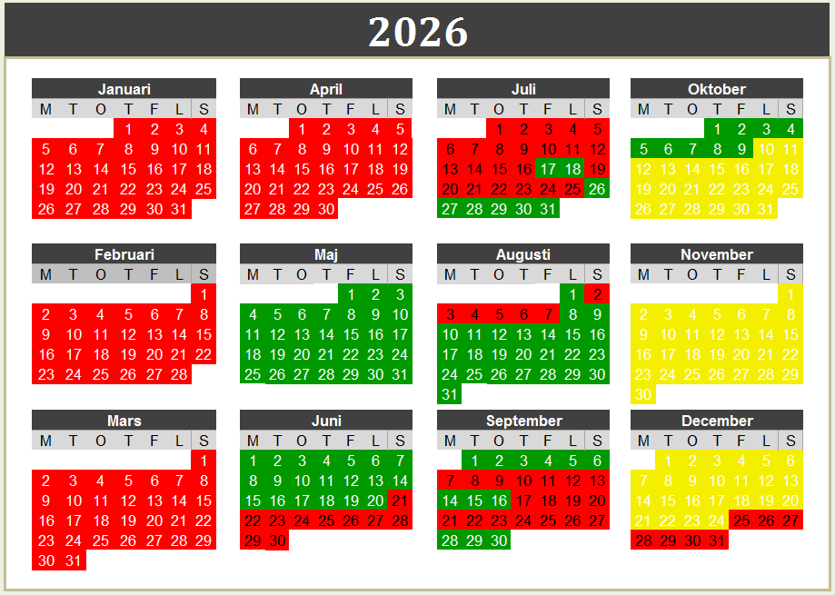 Resterande betalning skall ske senast 30 dagar före ankomst.
